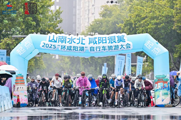 10月7日上午,2025“陜建十一建杯”環咸陽湖自行車騎游大會在咸陽湖統一廣場啟幕并順利完賽。
